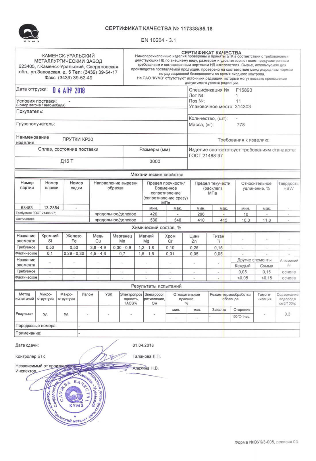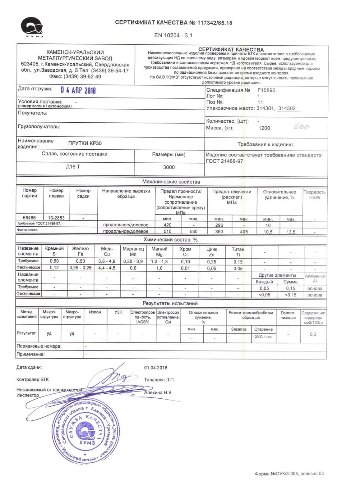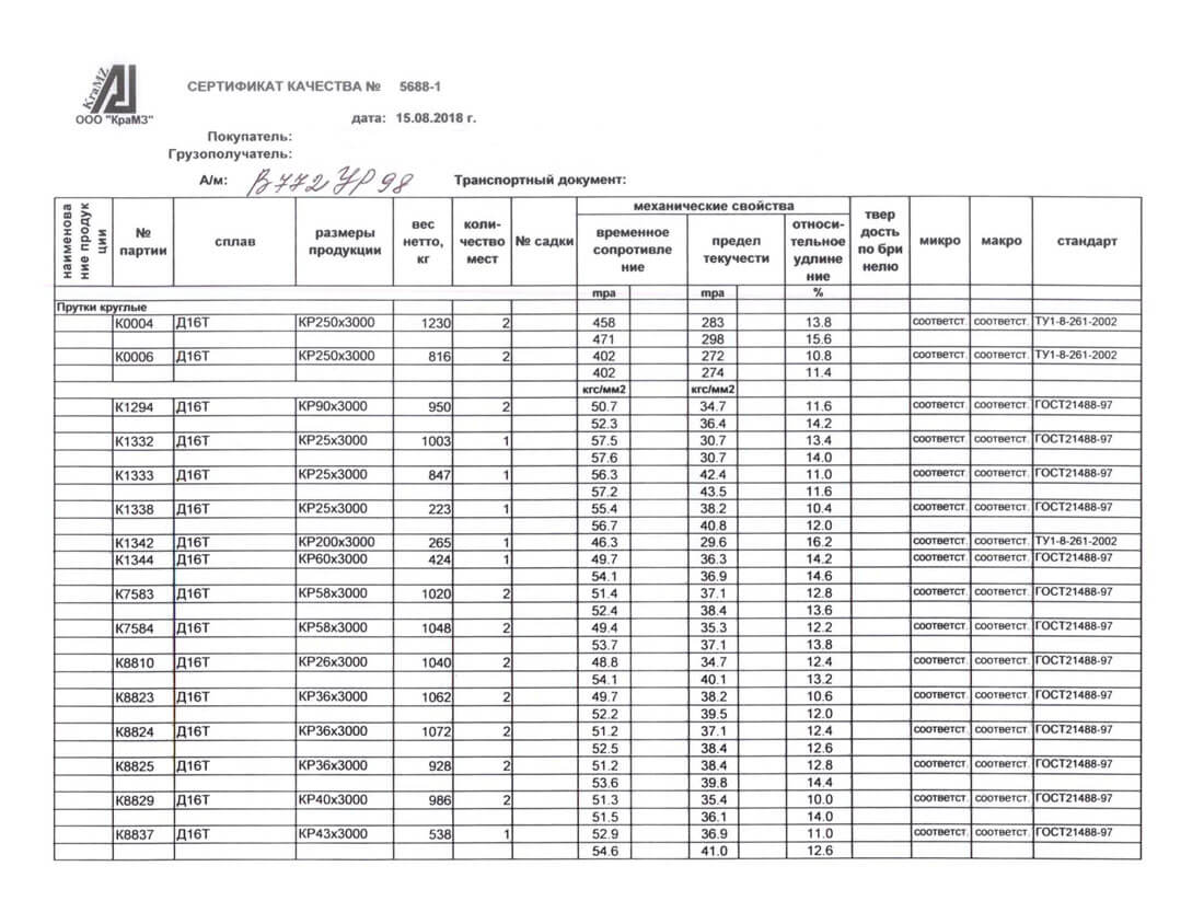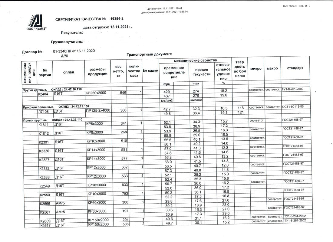 Дюралевые прутки из сплавов Д1, Д16, Д16Т, В93ПЧ и В95. Легирование магнием и медью, согласно ГОСТ 21488-97, с химическим составом по ГОСТ 4784-97, отбор и подготовка проб материала по ГОСТ 24231-80. Для повышения прочностных качеств, прутки поддаются термическому воздействию, при этом снижается пластичность и коррозионная устойчивость.